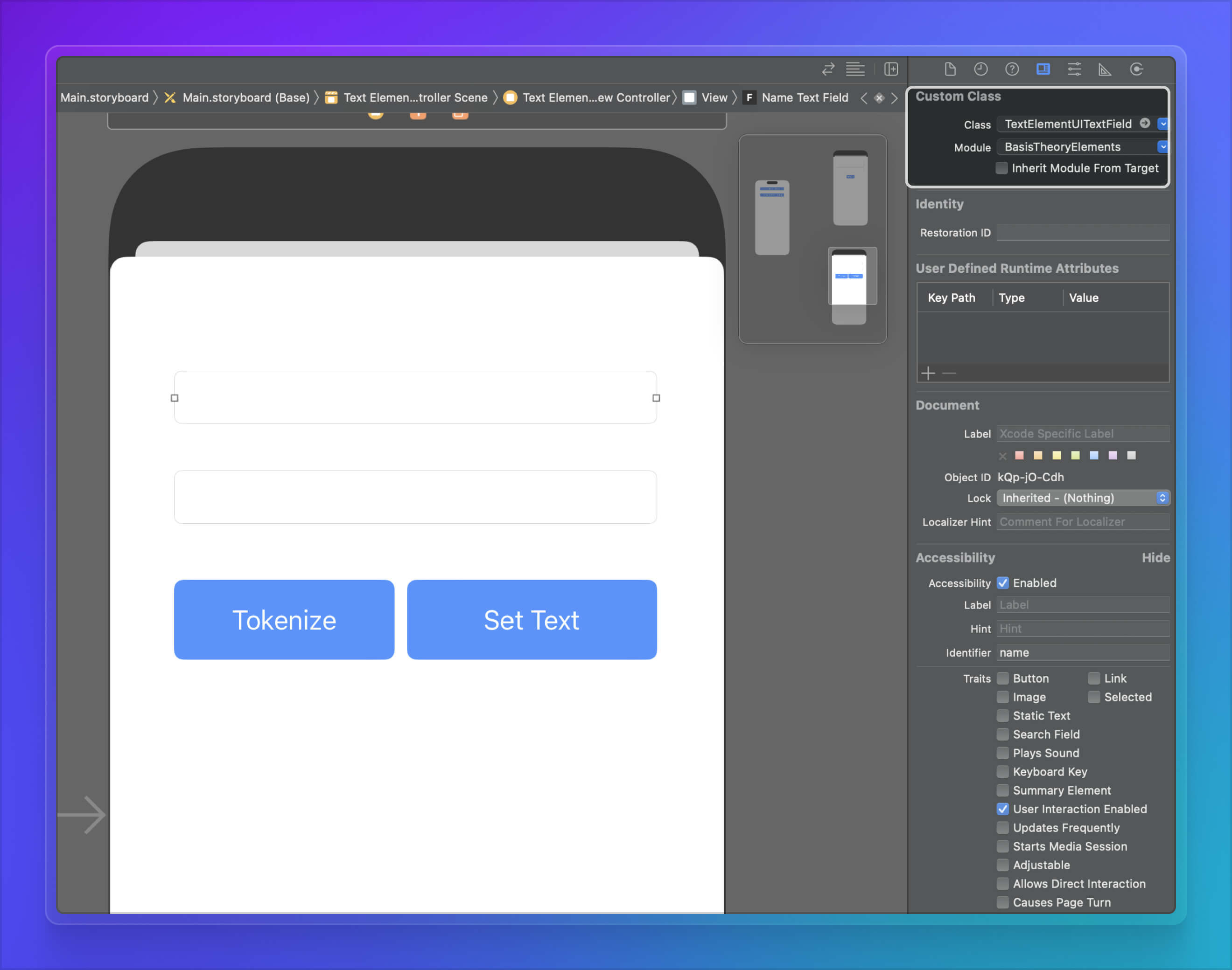 To initialize our elements, you’ll need to set a custom class on each of the UITextField